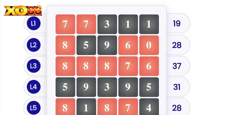 - Xỉu: Tổng điểm 25 ô từ 0 – 112 – Tổng điểm trên 1 dòng từ 0 – 22.